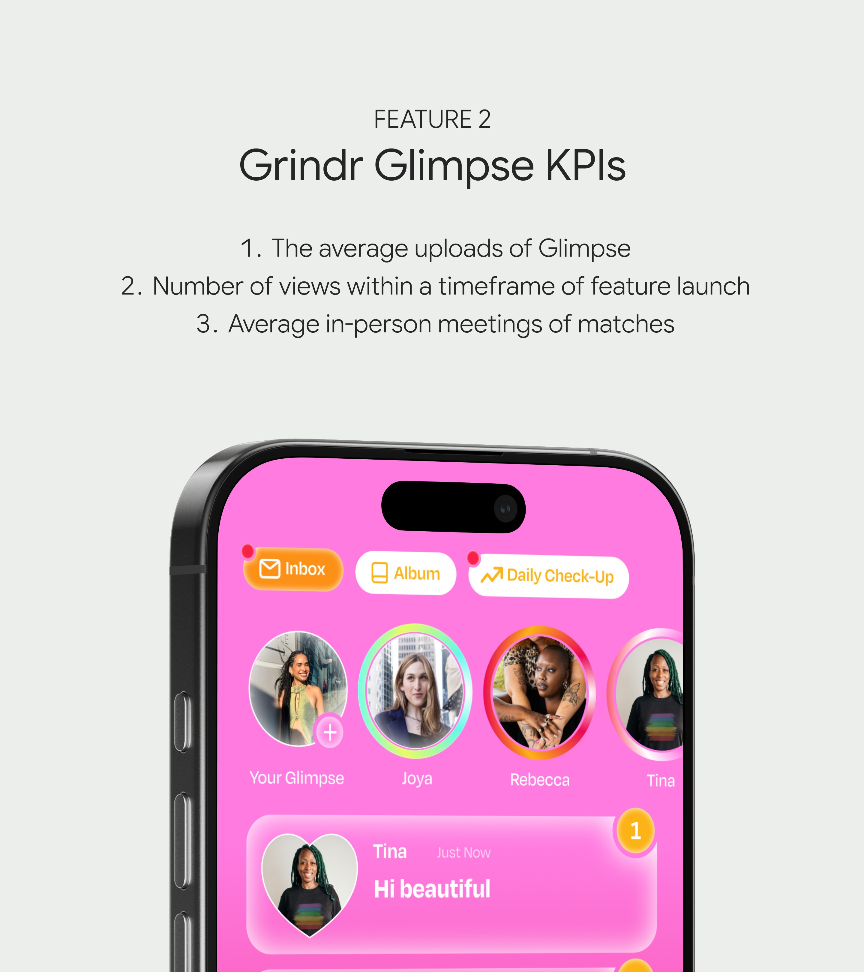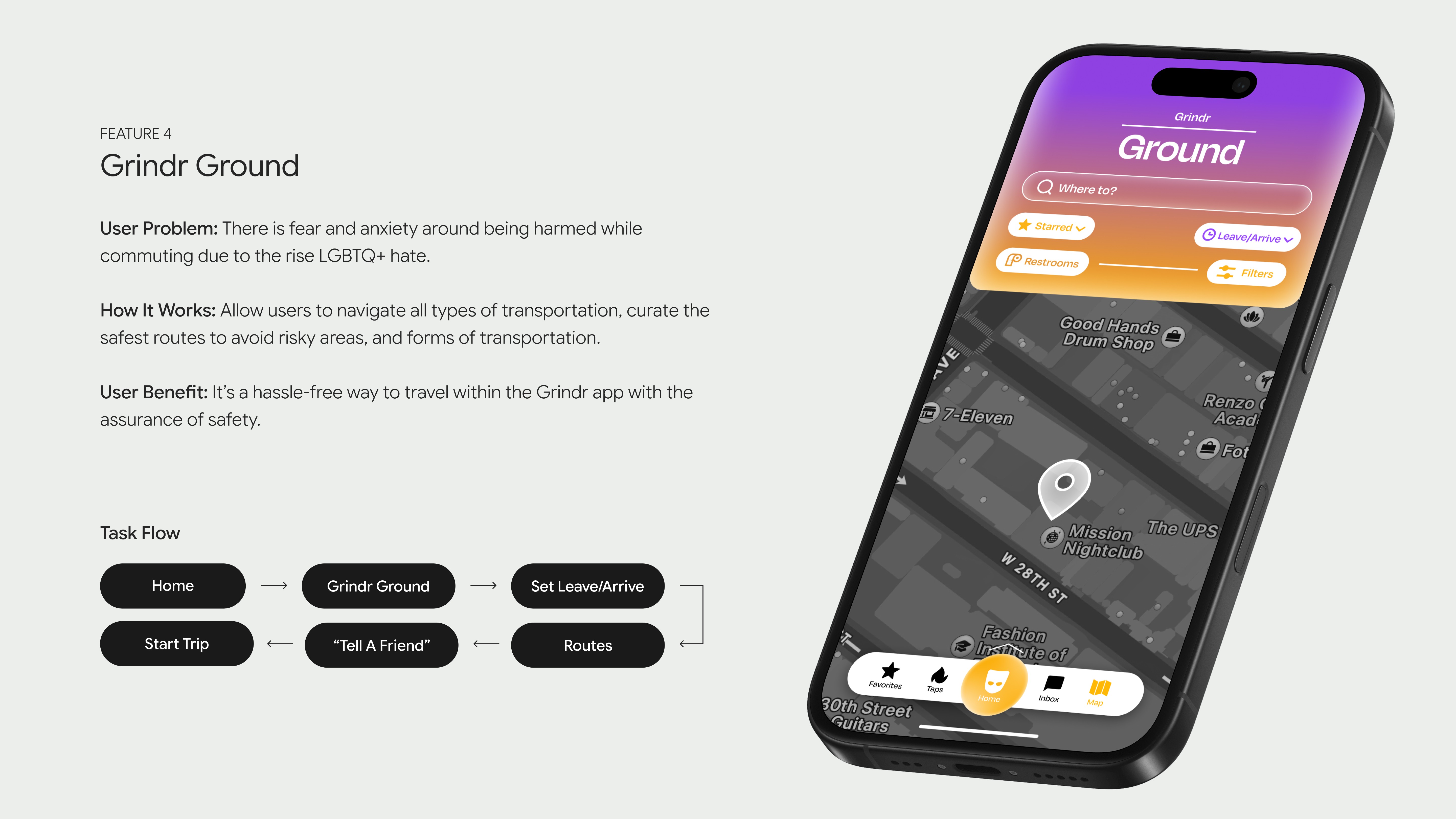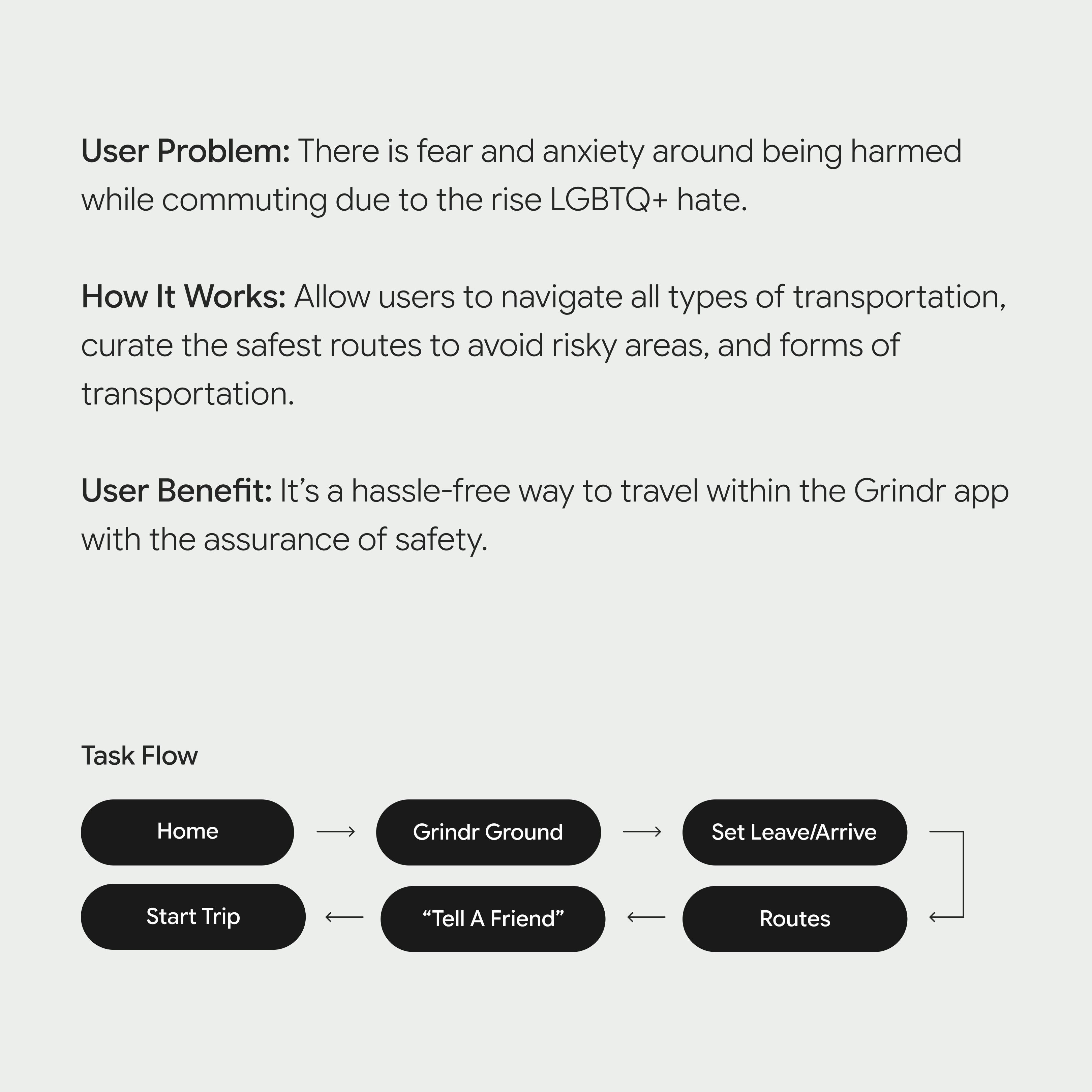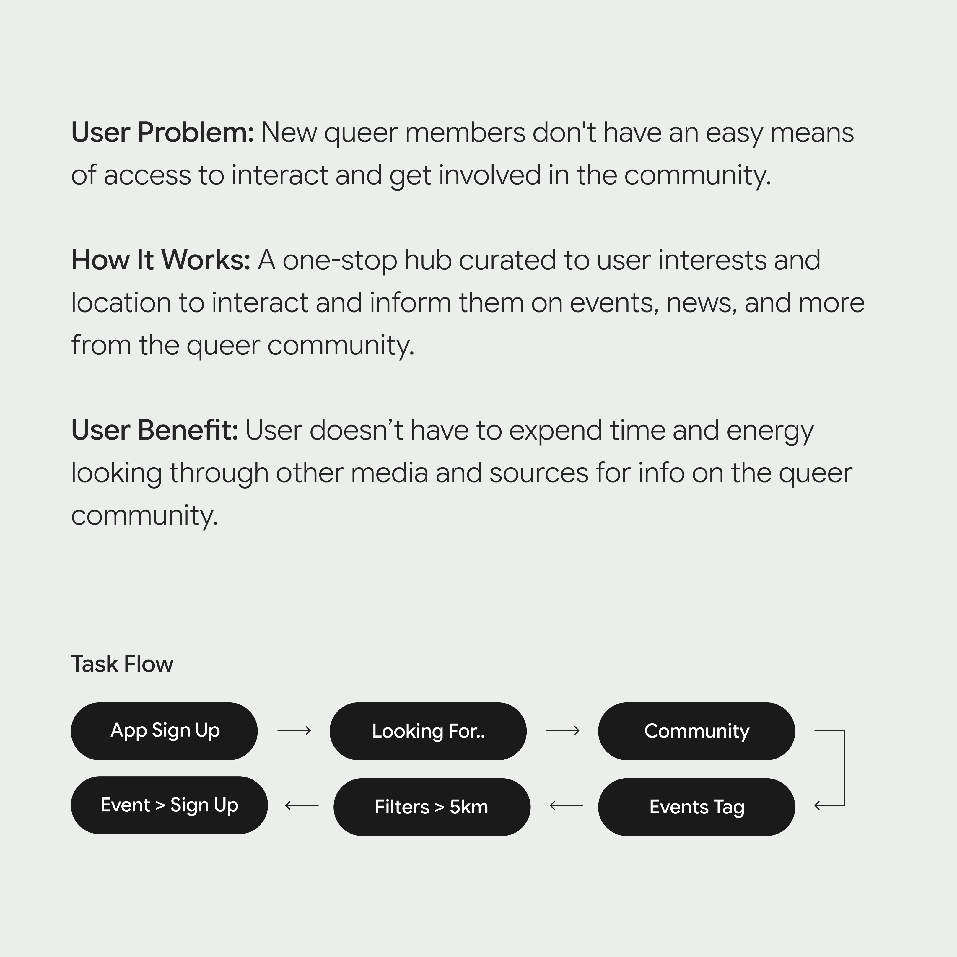 Users view Grindr as "hypersexual," increasing feelings of disconnect from the LGBTQ+ community and, at times, unsafe. Users don’t know where to seek authentic relationships and meet others like them (find a sense of belonging).