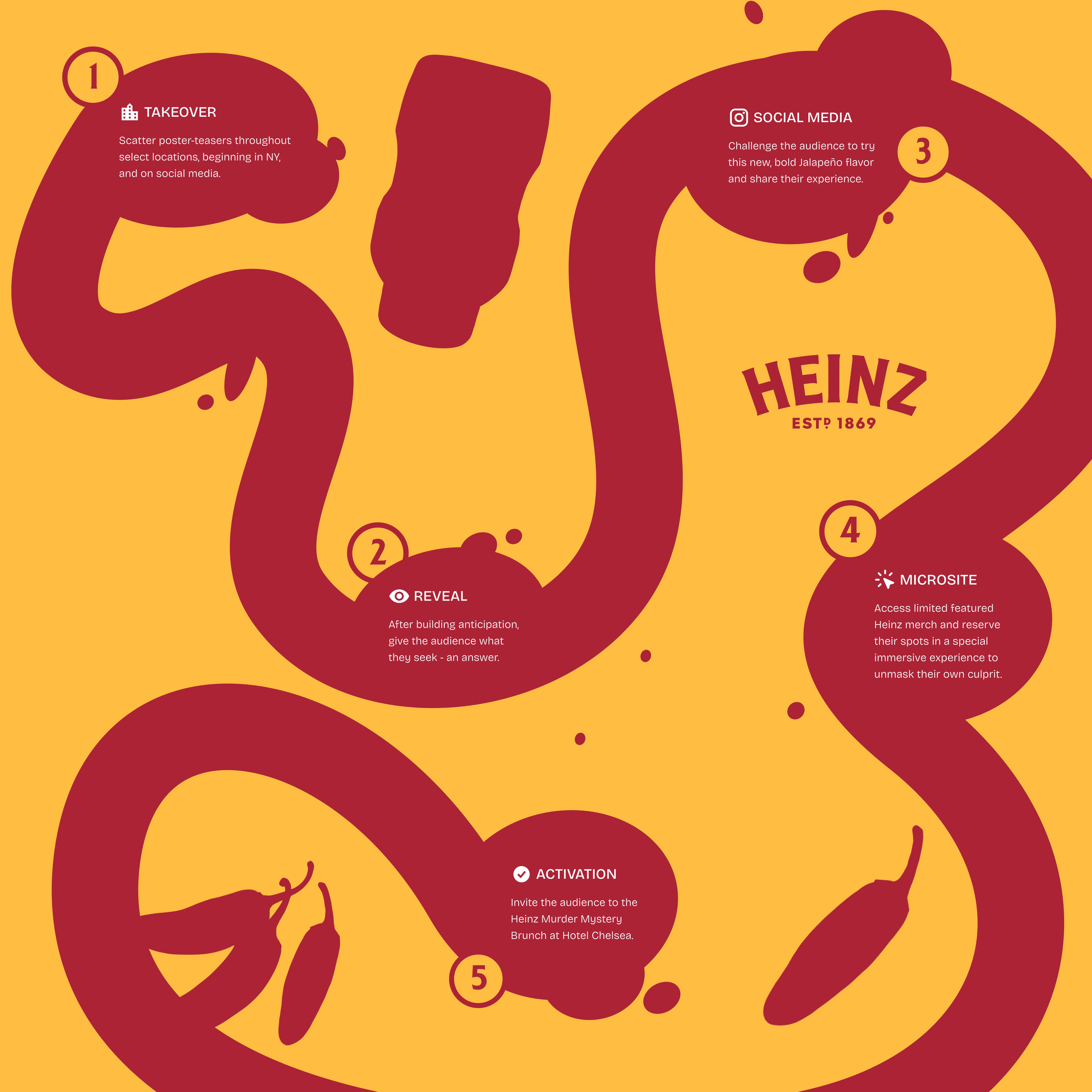 Disrupt the breakfast market by tackling the idea of bland morning food using Heinz Jalapeño Ketchup. Playing on a suspense-filled murder mystery and the personification of the product to engage audiences.