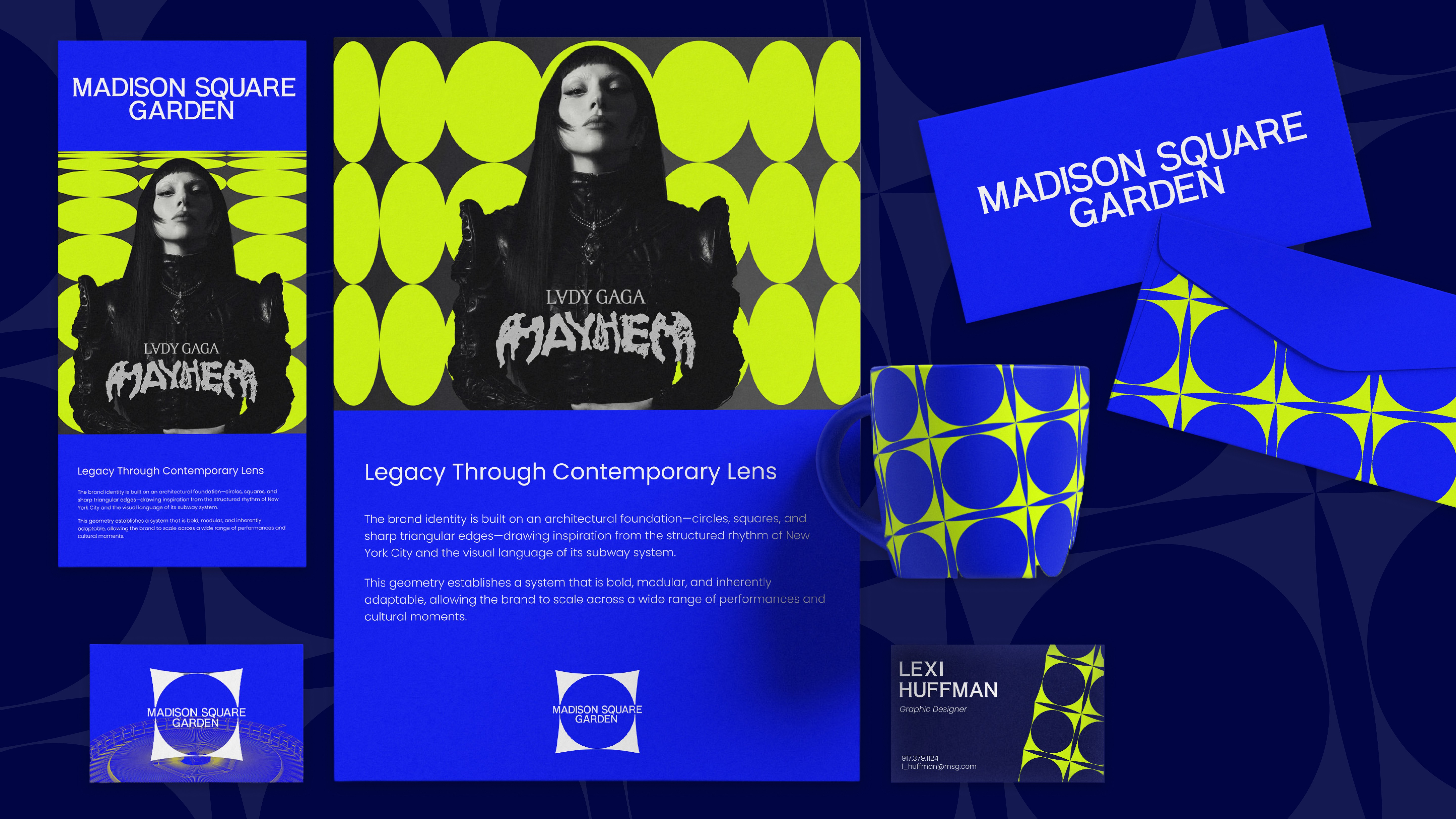 Being at MSG is an experience. Currently hosting grand artists and performances, but they have outgrown their current identity. MSG’s lackluster visuals fail to reflect the venue’s dynamic range of services, experiences, and cultural significance.