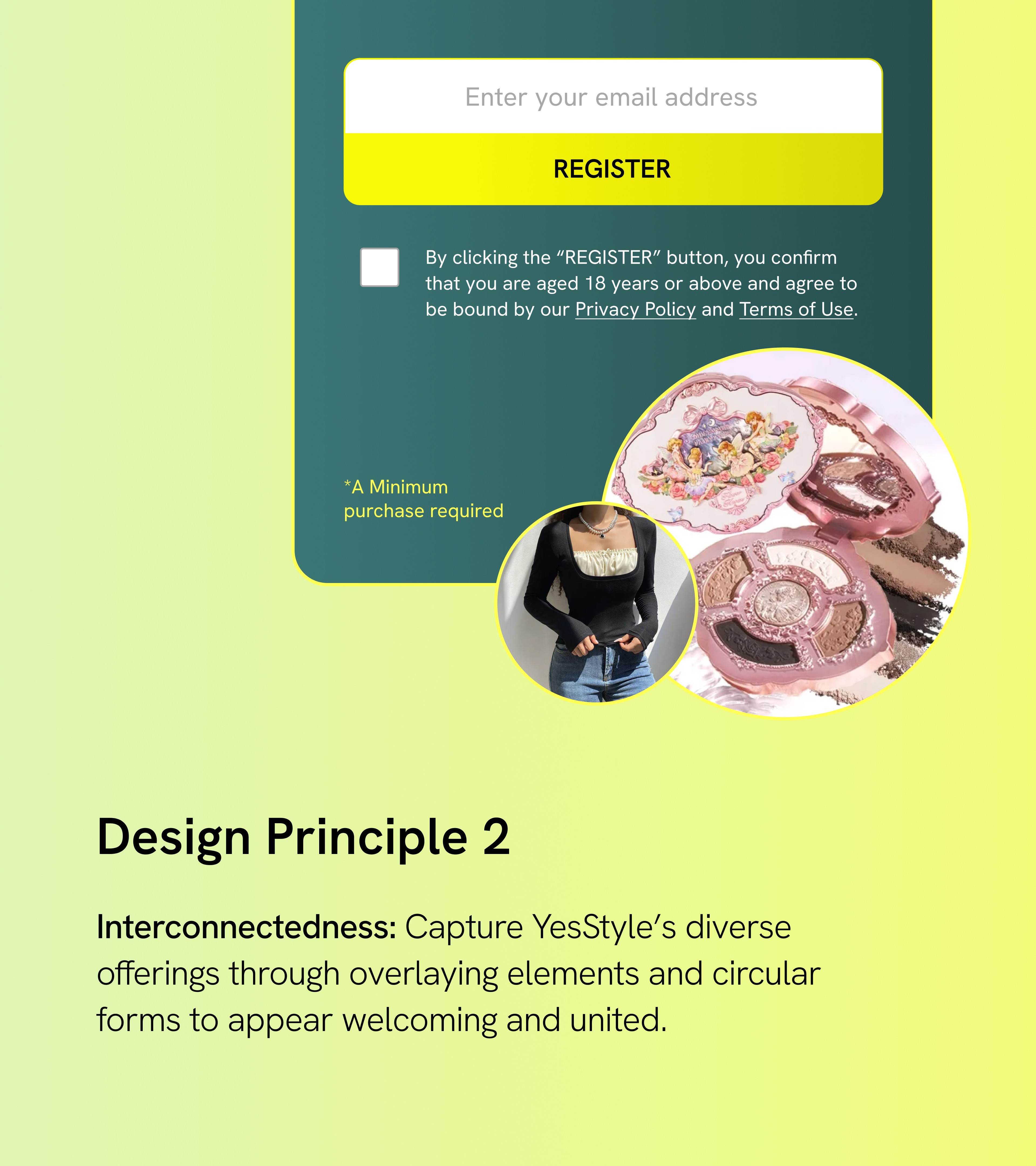 The rebrand utilized YesStyle's Brand Archetype, The Magician, to determine the visual look. It encompasses transformation and unlocks the potential for change, empowering customers to explore their style to realize their unique selves and beauty.